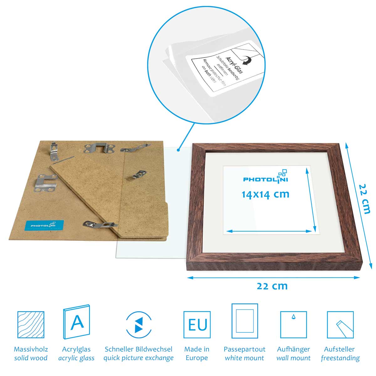 - ÉLÉGANT & INTÉMPORAL : Pour les portraits et les clichés de vos plus beaux moments - lot de 2 cadres en bois véritable chêne foncé. Fabriqué en UE. Intérieur 20x20 cm. Extérieur 22x22 cm.