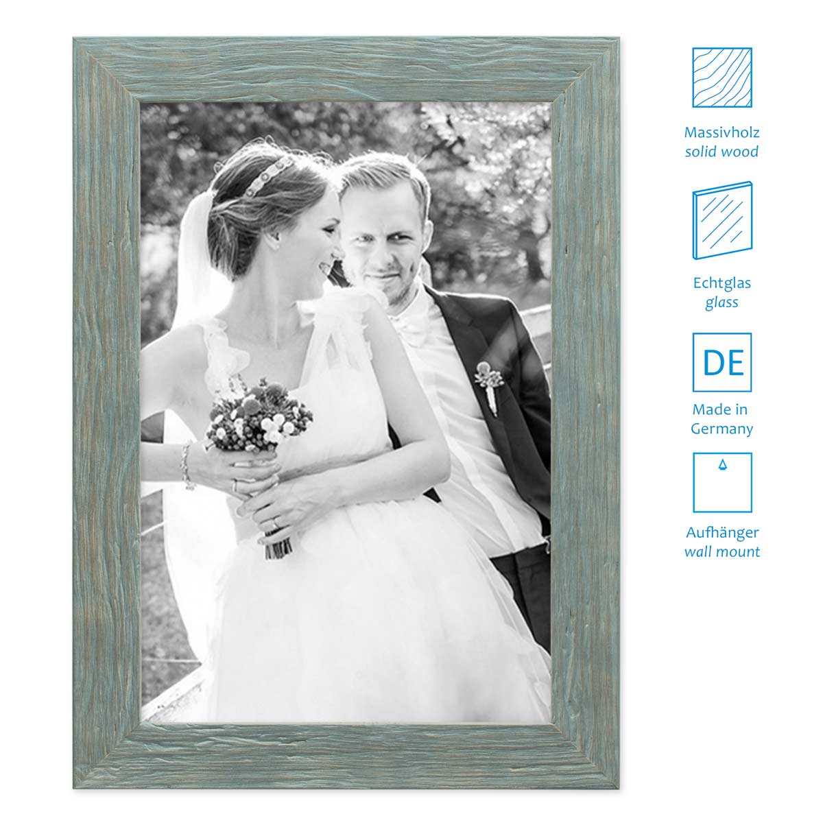 Set de 2 Cadres A4 21x30 cm Bois Massif Rustique Bleu avec Verre